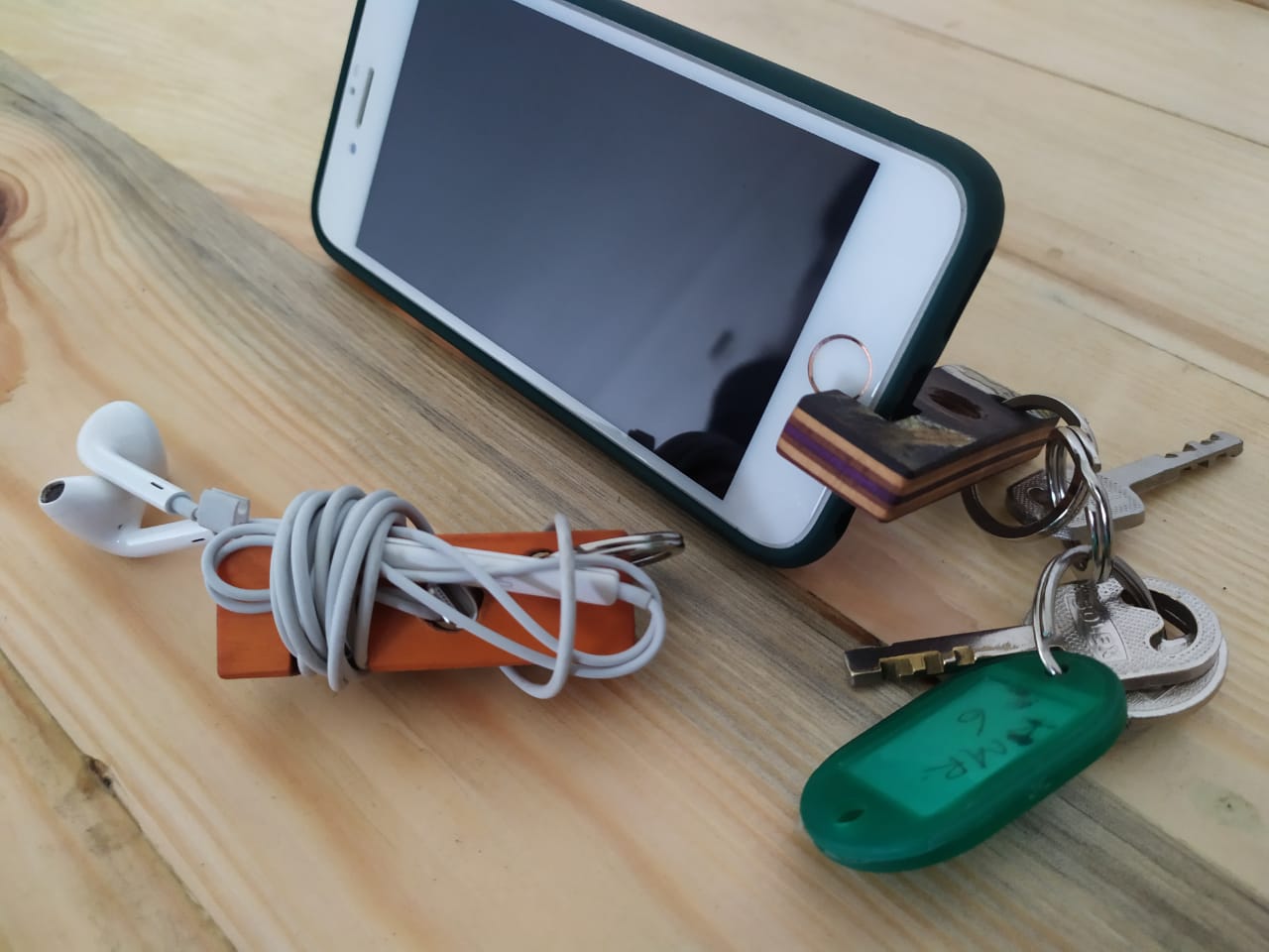 Upcycled Skateboard Mobile & Earphone Holder Keyring
